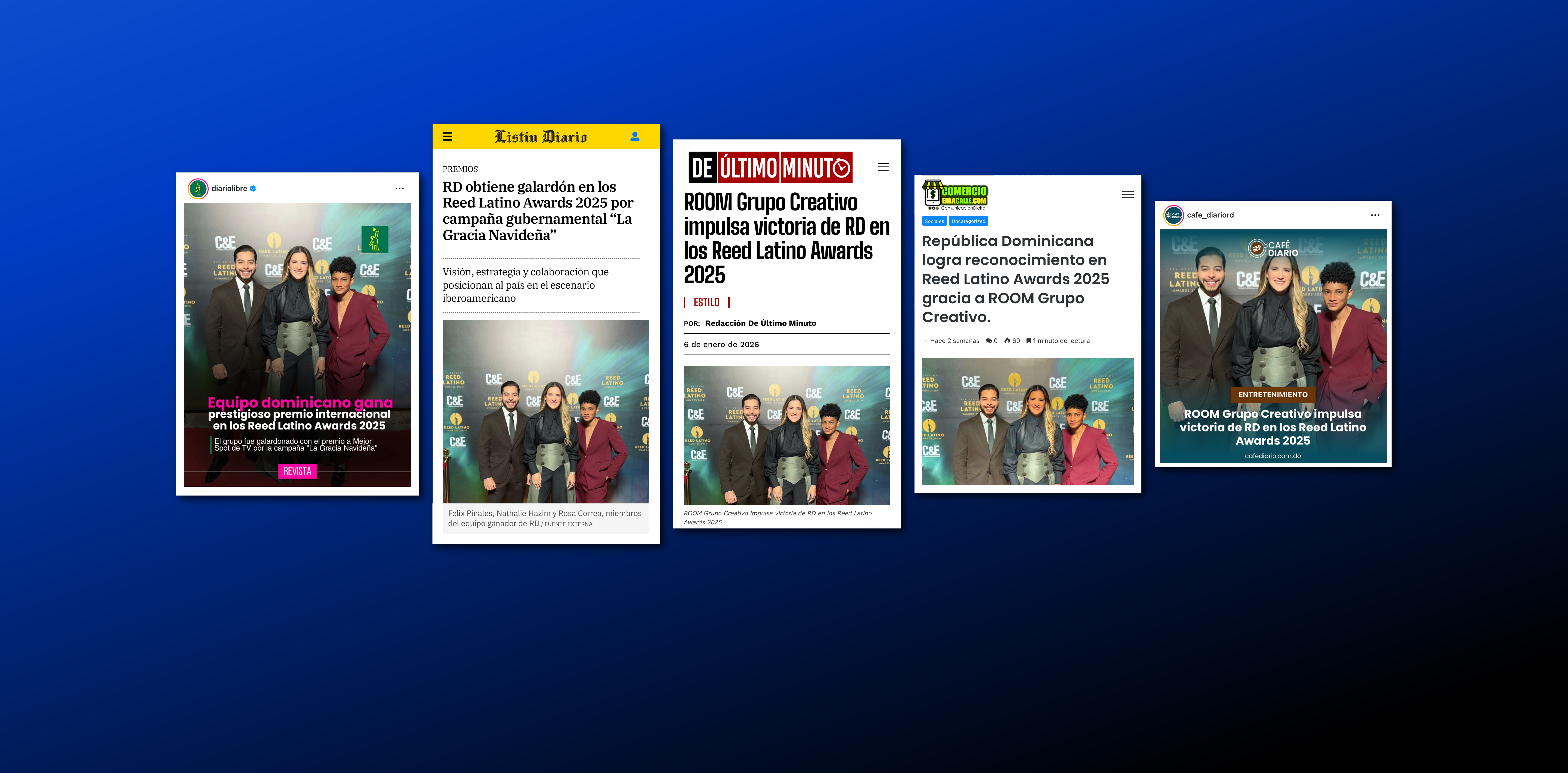Nuestro trabajo fue reconocido en los Reed Latino Awards 2025, donde la República Dominicana obtuvo el premio a Mejor Spot de TV (+60s) en Campaña Gubernamental por “La Gracia Navideña”, desarrollada para la Dirección General de Aduanas. Desde ROOM Grupo Creativo lideramos el concepto creativo y visual de una campaña con narrativa emocional y cercana, reconocida a nivel internacional.